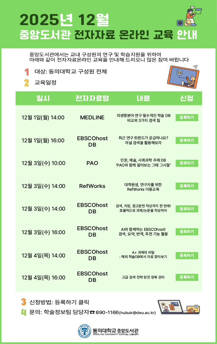 2025년 12월 중앙도서관 전자자료 온라인 교육 안내