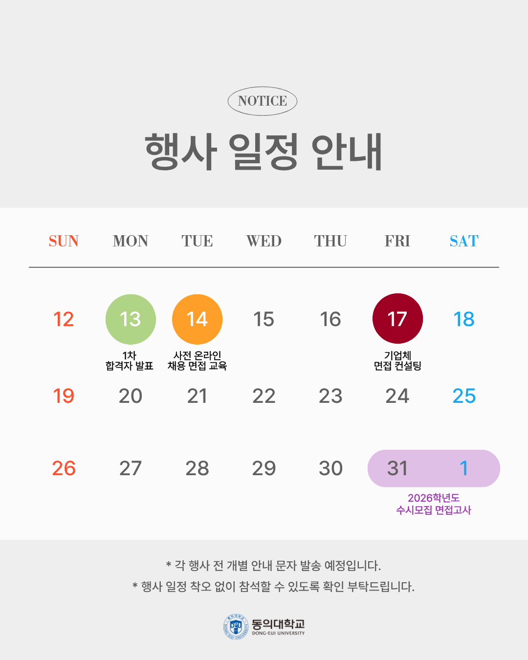 📍10.17.(금) 11:00 2026학년도 조기취업형계약학과 수시모집 1차 합격자 대상 기업체 면접컨설팅 행사
