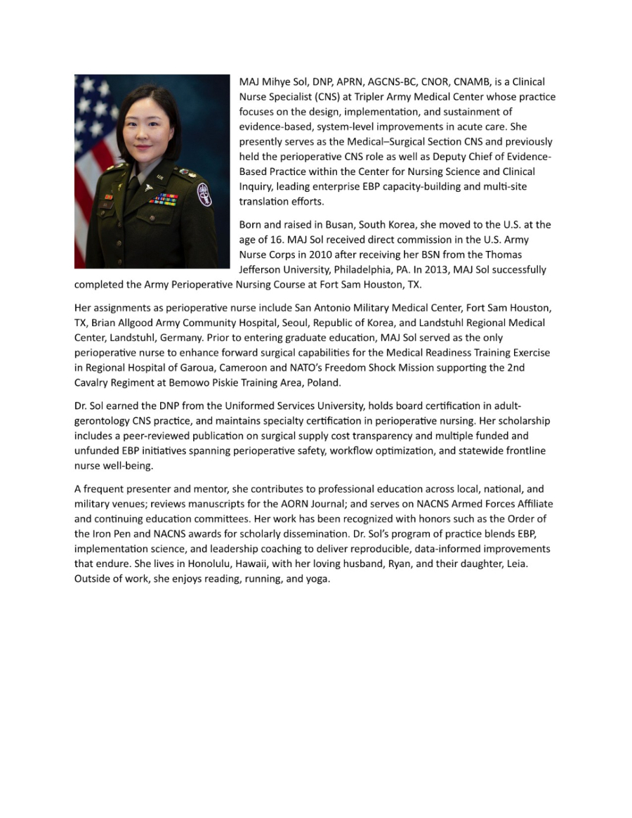 2. 강 연 자 : Sol, Mihye 미육군 소령