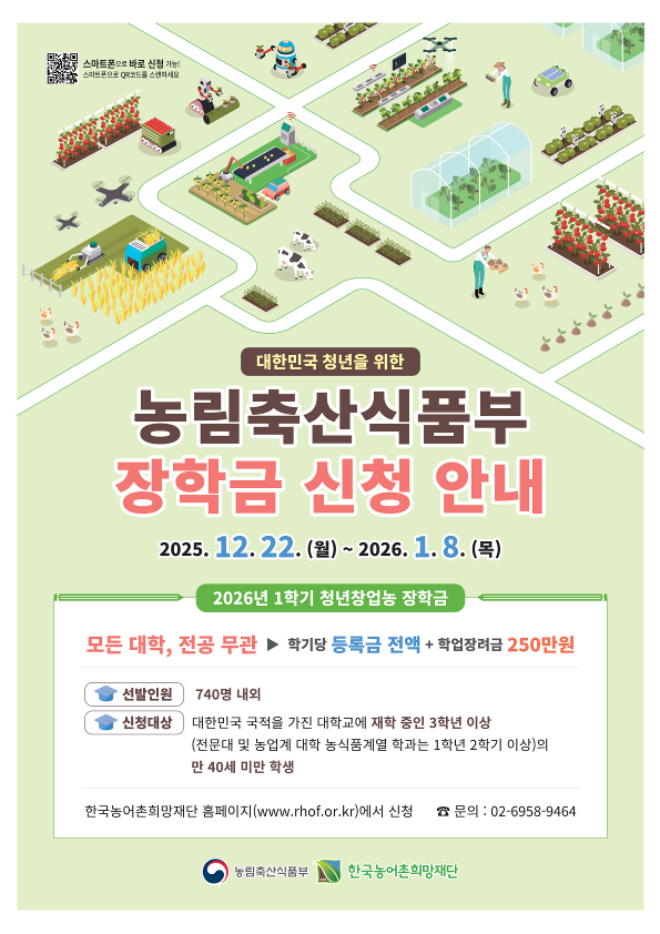 2026년 1학기 농어촌희망재단 청년창업농장학금 신청 안내